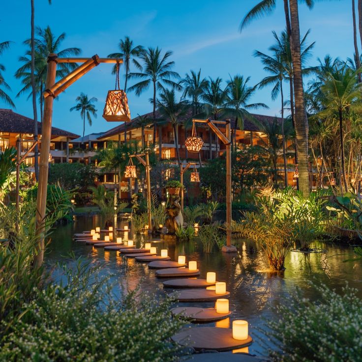 As evening falls, the resort transforms into a calm and peaceful retreat, with soft lighting and quiet surroundings creating a relaxing atmosphere.