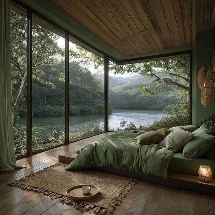 Our cozy bedroom interiors are designed to provide warmth, comfort, and peaceful rest after a day surrounded by nature.